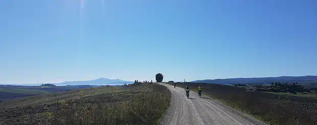 Il percorso prevede diversi tratti su strade sterrate. Non sono previsti passaggi tecnici, ma tanti km su strade bianche e sterrati per lo più abbastanza ben battuti. Si consiglia l’utilizzo di una buona Gravel o meglio ancora di una mountain bike front. Ovviemente nessun problema a percorrere il tour con qualunque tipo di Ebike.