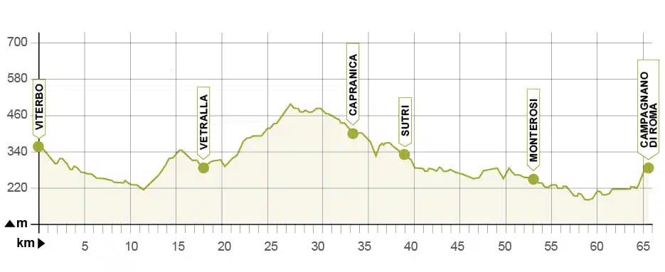 Viterbo – Campagnano di Roma: itinerario e altimetria